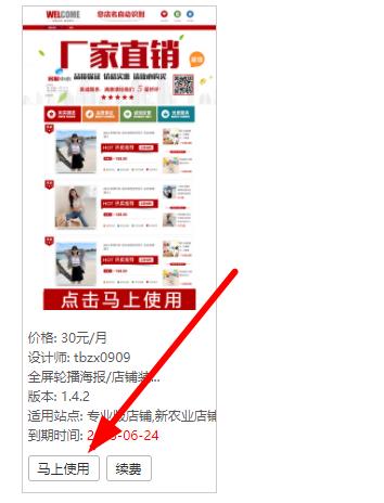 【第二步】:購買完成--復制下面鏈接打開模塊管理--往下拉 - 找到我購買的模板 - 點馬上使用 - 返回頁面修![]()