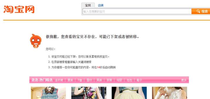打開店鋪首頁,和寶貝詳情頁 都顯示寶貝失效不存在
